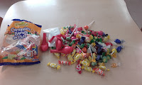 Depois foi a vez de fazermos a divisão das guloseimas recolhidas, aqui fica uma das quatro partes.